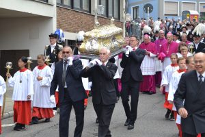 Voor wie iets weet over de bijzondere relatie tussen Werden – gelegen aan de Ruhr en tegenwoordig deel van de stad Essen – en de heilige Ludger is het bekend: elk jaar wordt op de eerste septemberzondag in de Ludgerbasiliek een pontificale hoogmis ter ere van de heilige opgedragen. Bij het begin van de viering wordt de fraaie schrijn met het gebeente van Ludger binnen gedragen en voorin de kerk bij het priesterkoor opgesteld. Na de viering gaat de schrijn op de schouders van dragers in plechtige processie door de straten van Werden, waarbij een halte gemaakt wordt voor een hartelijke ontvangst bij en door de evangelische kerk. Daarna legt de processie het tweede deel van de route af en keert terug naar de basiliek.