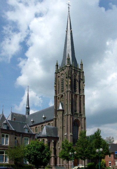 De St.-Werenfriduskerk in Zieuwent wordt de kathedraal van de Achterhoek genoemd. Deze niet officiële titel kan het imposante bouwwerk langs het Ludgerpad met ere dragen.Het interieur van de kerk heeft krachtig weerstand geboden aan de kerkelijke modegrillen in de jaren ‘60 en ‘70. Beter gezegd, de inwoners en herders van Zieuwent wisten wat religieuze kunst en erfenis betekenden en waren gelukkig weerbarstig. Bijna alles is vervaardigd door F.W. Mengelberg en grotendeels bewaard gebleven. Van ver torent het kerkgebouw boven de oude tien lange, aaneengesloten en kronkelende kerkpaden. Die paden vormen de oude routes over het boerenland naar het Godshuis. Het netwerk van paden is in ere hersteld en wordt onderhouden door vele vrijwilligers. Alle te voet of per fiets daarom goed begaanbaar. Een prachtig behouden erfgoed. De kerk is een grote driebeukige neogotische kruisbasiliek uit 1898-1899. Architect was J.W. Boerbooms (Arnhem 1849- Scheveningen 1899). Hij was leerling van P.J.H. Cuypers en onderging de invloed van A. Tepe en zijn Nederrijnse gotiek. Het is Boerbooms laatst gebouwde kerk en wat voor een! Stemmig licht valt door de glas-in loodramen in de zijbeuken. Die zijn van de Utrechter H.L.D. Kocken (1882-1955). De ramen in het priesterkoor waren van dezelfde kunstenaar. Deze moesten in 1958 echter worden vervangen door glas-in-loodramen van H. Schifferstein (Maastricht 1920 - De Bilt 1970?). St.-Ludger, bode van Christus in de Achterhoek en blijkbaar helder aanwezig in de memorie van Zieuwent, kreeg in de reeks ook een plaats. Daar zijn links de ramen van St.-Ludger en St.-Werenfridus, rechts St.-Martinus en St.-Bonifatius. Centraal het raam van Christus als albeheerder, waaronder Geboorte, Doop in de Jordaan en Longinus met Christus aan het Kruis. Zieuwent, de kerkpaden en het Rijksmonument St.-Werenfridus langs het Ludgerpad zijn een bezoek waard. Terrasjes in het dorp veraangenamen een verblijf. Hans de Graaf. Bronnen: Erfenis voor vandaag en morgen, R.-K. Kerken in de Achterhoek; J.A.Chr. de Graaf e.a.; Aalten 2009. Website: Rijksmonumenten.nl; Alle Rijksmonumenten van Nederland. |