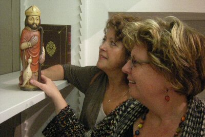 Ludgerbeeldje in Deventer raadzaal. Woensdagavond 9 maart is er een Ludgerbeeldje geplaatst in de vernieuwde raadzaal van de gemeente Deventer. Die zaal was eerder een bibliotheek met veel oude boeken. De gemeente had inwoners, verenigingen en scholen gevraagd boeken en voorwerpen aan te bieden, om die een plaats te geven in de oude schappen en kasten van die nieuwe raadzaal. Woensdag 9 maart werden die aangeboden en kregen ze meteen een plaats in een van die schappen of kasten. Namens zorginstelling Ludgerus boden Helma Kamperman Leferink en Jeannette Harink, resp. directeur/bestuurder en manager zorg, een Ludgerbeeldje aan en mochten zij dat meteen een plaats geven. Het kwam in een van de vele kasten te staan, samen met een bronzen beeldje van Titus Brandsma. ![]() Zo hadden zich 150 mensen gemeld, veelal met boeken die te maken hadden met de historie van Deventer. Er waren zelfs boeken bij uit de 17-e eeuw, die allemaal als decor gaan dienen voor de opgeknapte raadzaal. Zelfs een boek uit 1644 met de toepasselijke titel: De rechten ende gewoonten der Stadt Deventer. Het vernieuwde stadhuis ligt midden in het centrum, aan hetzelfde plein als de Lebuïnuskerk. Zo zijn Ludger en Lebuïnus ook nog als het ware met elkaar verbonden. Na zijn terugkeer uit York zette Ludger het missiewerk van Lebuïnus, die overleden was, in en rond Deventer voort. Dat was rond 780. Ludger herbouwde het kerkje dat door Lebuïnus was gebouwd en door de Saksen verwoest. Ludger bleef niet zo lang in Deventer. Maar zo heeft Ludger na Lebuïnus een belangrijke rol gespeeld in de geschiedenis van Deventer. Daarom is een plaats van het beeldje in de nieuwe raadzaal helemaal terecht. |
