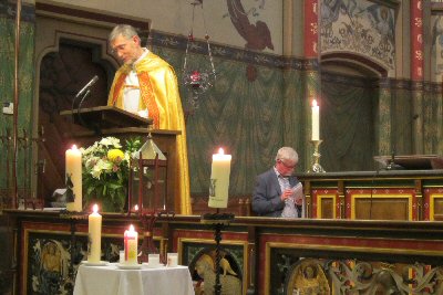 Vesperviering Vierakker, 28 april 2016. Jaarlijks wordt op de sterfdag van de heilige Ludger, 26 maart 809, in de St. Willibrordkerk van Vierakker een Vesperviering gehouden. In 2016 gebeurde dat, vanwege de late Pasen, op 28 april, de dag van overbrenging van zijn dode lichaam, overeenkomstig zijn uitdrukkelijke wens, naar het door hem zelf gestichte klooster van Werden bij Essen (Duitsland). ![]() Aan het begin van deze vesperviering werd een tekst van de heilige bisschop zelf gelezen, woorden die de RK Kerk heeft gekozen voor het algemeen Nederlandse getijdenboek. Zeer interessant is, dat Ludger hier, in navolging van de apostel Paulus, uitdrukkelijk oproept om diegenen te gedenken die aan de voorouders het christelijk geloof gebracht hebben. Ludger was geboren aan de Utrechtse Vecht in wat sinds de 12e eeuw en dankzij de Duitse familie von Sülen nu oud-Zuilen heet. Ludger dacht natuurlijk aan de heilige Willibrord en aan Bonifatius, die hij zelf trouwens nog gekend heeft. Ludger had evenwel nooit kunnen vermoeden, dat deze tekst ooit nog eens op hem zelf toegepast zou worden. Het is dus een soort profetische tekst. Lees maar: Boodschap van Ludgerus: Natuurlijk moet onze liefde uitgaan naar al onze broeders in het geloof dat door de liefde werkzaam is, maar vooral moet onze liefde uitgaan naar onze heilige vaders en leiders, overeenkomstig de vermaning van de apostel: “Wij verzoeken, u, broeders en zusters, om hen die onder u arbeiden en die u leiden in de Heer en u terechtwijzen, te waarderen en hen om hun werk meer dan gewone liefde waardig te keuren” (1 Tess. 5,12-13). Deze waardering, die wij boven alles voor onze leiders moeten hebben, bestaat hierin dat wij hun tijdens hun leven de verschuldigde eer en gehoorzaamheid oprecht betuigen en wij na hun dood hun godvruchtig en zegenrijk voorbeeld niet alleen in herinnering houden, maar er ook voortdurend met anderen over spreken en het verder bekendmaken tot stichting van allen. Zo geven wij werkelijk gehoor aan de aansporing die de apostel elders met betrekking tot onze geestelijke vaders geeft: “Haal u de afloop van hun leven voor de geest en neem een voorbeeld aan hun geloof.” (Hebreeën 13, 7). Indien wij zo, in dit leven, hun voetspoor volgen, ons hun voorbeeld voortdurend ter harte nemen en voor ogen houden bij al wat we doen, zullen we eens, naar het woord van het evangelie, mogen binnengaan in de eeuwige vreugde van onze Heer. U kunt de tekst van de overweging van 28 april nog nalezen in het pdf-bestand www.ludgerkring.nl/lunb1681.pdf. |